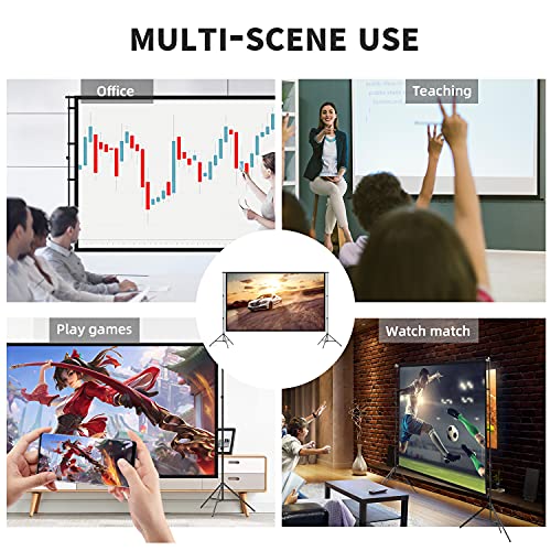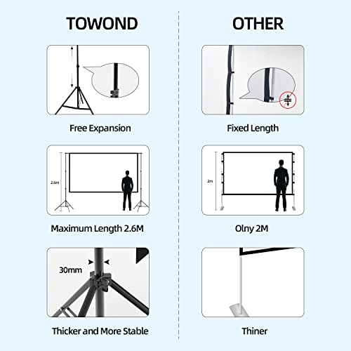 - Projector Screen with Stand. 150-inch diagonal, 160°wide viewing angle, aspect ratio 1:1 and 16:9 4k HD portable projector screen is made of high quality natural polyester fiber. Towond projector screen offers sharp and bright images. Thick and anti-crease design giving you more fun and less mold, even support FRONT and REAR projection.