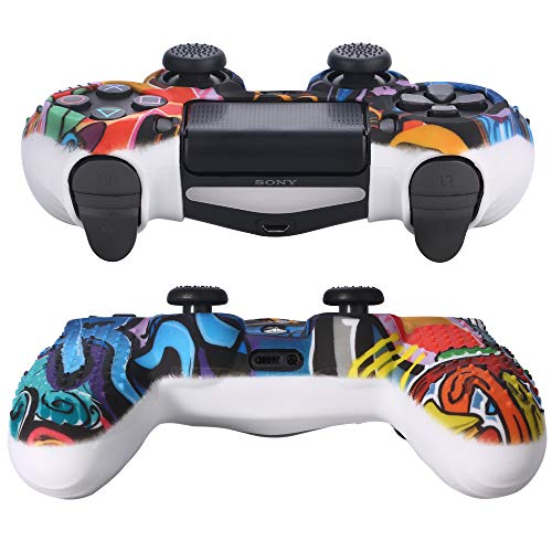 Details: The High Quality Silicone Grip for PS4 Controller Personalized STUDDED Anti-slip Silicone Cover Skin for PS4/ SLIM/ PRO controller x 1 + FPS PRO thumb grips x 8 Unique Skin Only for You Do you want to get a personalized pattern skin for your PS4/PS4 Slim/PS4 Pro Dualshock 4 controller? We are the best choice for you. There is not identical skin in the market. Every case for ps4 controller is unique. Sweat Hands-Resistance Smooth and dry silicone material make you never worry about the sweat hands problem during playing games. Comfortable Griping Specifically designed DOTS surface improve the grip splendidly, can not be without it once you have used it, just like palm massage while playing, comfortable beyond your imagination. The bulge granule and striping design can best improve your gaming holding power, bring best gaming experience for players. And you don't need to worry about slip problems. Precisely Cut for All Functions Precisely cut for all functions, the skin will never get in the way of any functions, free to play the combos and movement, to use cables or earphones. Nice Protection Performance This Dualshock 4/PS4/PS4 Slim/PS4 Pro skin not only provides grip but adds another layer of protection for your controller. Protect your controller against scratches, smudges, and more. Long Term Use This light and durable silicone cover provides a better griping surface. Maintains grip even when damp. No restrictive movement. Package included: 1 x Silicone Cover for PS4/PS4 Slim/PS4 Pro Controller 8 x FPS Pro Thumb Grips Caps WARNNING: Consoles,Controllers,Games are only for display,not included.