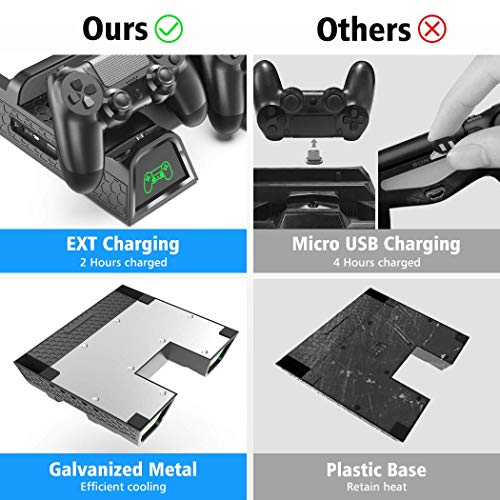 - Upgraded Cooling System: Cooling down your Playstation 4 console efficiently, the noise was decreased as low as 50dB, metal bottom helps you to keep your console cool and clam through playing games all the day and night.