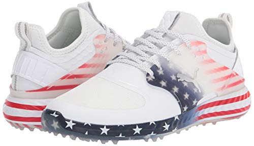 Details: Defending Champion Gary Woodland will head to the 2020 US Open dressed from head-to-toe in PUMA style. Displaying a stars and stripes, Old Glory-inspired graphic across the upper, midsole, and outsole. But, with Woodland's input, our designers incorporated even more special elements into the shoe. Last year, Woodland started a great friendship with Amy Bockerstette, a talented young golfer, the pair was first introduced at the 2019 Waste Management Open. When they met, Amy told Woodland "You've got this" a saying he repeated to himself on Sunday as he came down the stretch on his way to win the 2019 US Open. This quote can be found on the inside of the PWRCAGE. The other unique design feature, Woodland is a proud Jayhawk, attending Kansas University, so we incorporated his alma-matter chat "Rock Chalk" on the inside of the PWRCAGE of the medial side, and a limestone graphic sock liner to represent the campus that is built on top of limestone.