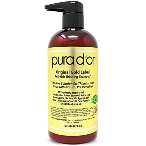- PURA D'OR IS THE LEADER IN HAIR THINNING THERAPY FOR THICKER & FULLER HAIR: PURA D’OR Original Gold Label Anti Hair-Thinning Shampoo w/ Biotin and DHT Herbal Ingredients is proven & tested to reduce hair thinning. It promotes hair strength & thickness with increased volume & reducing breakage. Results may vary.*