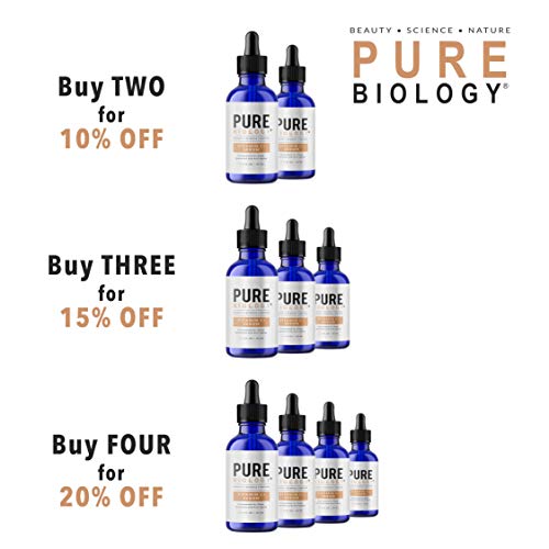 Details: ANTI AGING SERUM - At 30% concentration, Pure Biology's vitamin c serum has more vitamin c than truskin, mad hippie, tree of life or plexaderm as seen on tv.* Magnesium ascorbyl phosphate is a gentle water-soluble derivative of Vitamin C that helps boost collagen and is excellent for sensitive skin. Additionally, our vit c serum includes skin brightening ingredients such as jojoba oil, witch hazel, hyaluronic acid, proline, vitamin e, aloe and one of the most potent anti wrinkle serum complexes, Fision WrinkleFix.* Combined, this vitamin c hyaluronic acid serum serves as a dark spot corrector for face, dark spot remover for face, age spot remover, acne scar serum and scar removal.* This vitamin c and e serum is more concentrated than skin lightening creams and other dark spot removers or dark spot correctors.* FISION WRINKLEFIX - This vitamin c face serum addresses the early signs of aging with Fision WrinkleFix.* This face serum complex helps minimize the appearance of deep wrinkles, reduce the appearance of dark spots and age spots, and boosts hyaluronic acid production in the skin.* Pure Biology's vitamin c serum for face can also help address similar anti aging issues to the likes of a brightening serum and lightening serum, making this facial serum a must-have vitamin c serum with hyaluronic acid!* POWERFUL HYALURONIC ACID SERUM - The inclusion of hyaluronic acid & Fision WrinkleFix provide significant enhancements as a pore minimizer, acne scar treatment and anti wrinkle serum. Our vitamin c serum formula's has enhanced ability to help reduce the appearance of wrinkles, fine lines, acne scars and age spots.* This naturally-derived, revolutionary complex binds together unique plant peptides to promote enhancements in skin vitality and the ability to diminish the appearance of age spots, fine lines and other aging-related imperfections.*