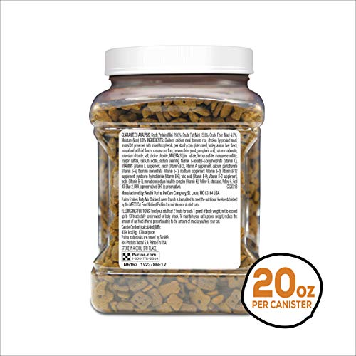 - One (1) 20 oz. canister - Purina Friskies Made in USA facilities cat Treats, party Mix chicken Lovers crunch