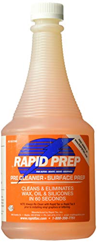 Details: Preparation is the key to success. With an ever growing need for a safer workplace, we developed a pre cleaner that not only works great, but is safe to use. Gone are the days of using flammable and hazardous chemicals to pre-clean with. Wax, grease, oil and silicone residues are the number one reason for both paint and film application failures. Rapid Prep easily and safely eliminates these and other contaminants ensuring a successful paint or film application, and a happy customer. Ideal for pre cleaning almost any surface including automobile paint, bare metals, sign materials and glass, Rapid Prep was formulated by people with hands on experience and a desire to make a safer more effective pre-cleaner. STEP 1. Spray liberally on surface to be cleaned. STEP 2. Using a plain white household paper towell, thoroughly wipe surface from center outward until dry. STEP 3. Repeat step 2 STEP 4: Now you must clean the surface again with Rapid Tac or Rapid Tac II to remove any remaining residue of Rapid Prep.