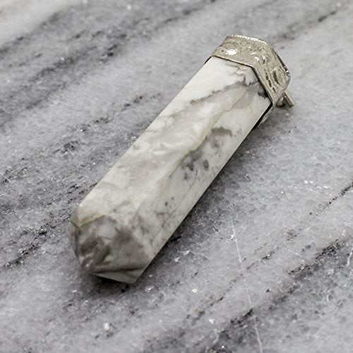 Details: Contents: White Howlite Pendant (about 1"-1.5” length. ½” wide), adjustable leather chord (16"-24"), Silver-Plated 18" Chain, Pouch for Easy Storage, E-Book sent via email after purchase. Known as the spiritual stone of consciousness, Howlite helps the user discharge attachments to emotional pains and upset states of mind while bringing peace in replacement. Howlite also allows the wearer experience calmness during problematic confrontations lessening greed, rudeness, and anger sensed externally or from within. Howlite helps relax the overactive mind, attain calmed emotions, and achieve deep sleep. While asleep Howlite can help the user bring back retrieved wisdom from the dream state upon wakening. This stone can also diminish anxiety and stress while bringing forth mental awareness. Each crystal is unique so there might be natural variations in color and size. This product is not intended to diagnose, treat, cure, or prevent any disease. Order Today! Please absolutely make sure you are buying from Ayana Wellness in the checkout, as Amazon is not combatting fake sellers!
