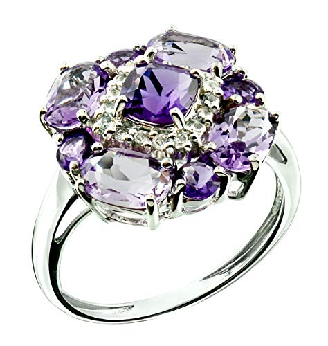 - GEMSTONE - 1 pc of GENUINE AMETHYST Cushion 5 mm, 4 pcs of GENUINE PINK AMETHYST Oval 6x4 mm, 4 pcs of GENUINE AMETHYST Round 3 mm, 16 pcs of GENUINE WHITE BERYL Round 1.1 mm accented, Approximated Total Gems Weight = 2.69 Carats