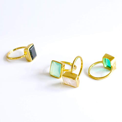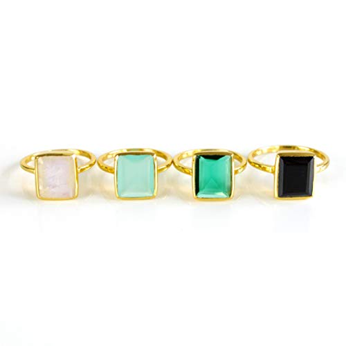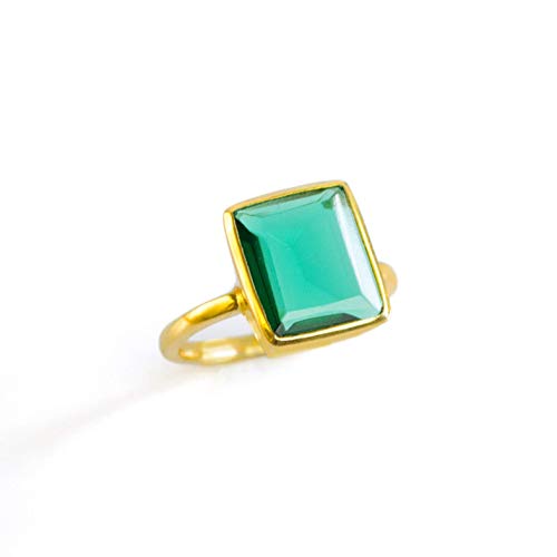 Details: This beautiful stackable bezel set ring is made with rectangular faceted Green Tourmaline gemstone in 18K Vermeil Gold. The ring has a 925 stamp. Gemstone size is approximately 9 x 14 mm. We have similar rings available with other gemstones.