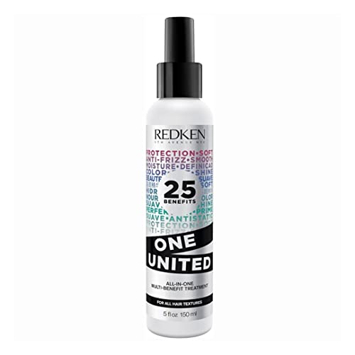 Details: Product Description Redken One United All-in-One Multi-Benefit Treatment leave in conditioner and heat protectant spray is for all hair types and textures. This treatment offers 25 benefits that increase manageability, protect against hair damage and promote the beauty of your hair. -Sulfate free, paraben free and free of heavy waxes for lightweight, instant results. Formulated with coconut oil to protect hair's vibrancy. One United can be used as both a leave-in and rinse-out hair treatment. Brand Story Redken is a professional haircare and haircolor company dedicated to providing science backed products, inspiring education and unparalleled creativity for consumers and stylists alike