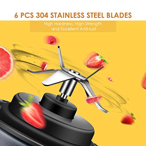 - Stainless Steel 6-pointed Blade: Food grade 304 stainless steel, long service life, provide you with safe and secure food; 6-point blade design can blend fruit and vegetable more thorough, let you enjoy a smoothie with velvety texture.