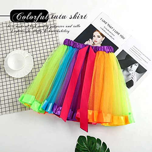- Rainbow tutu for women is in elegant and princess style. Multi color stitching together will make you pretty and lively. It also can be matched with the different costume or be worn with leggings as skirts.