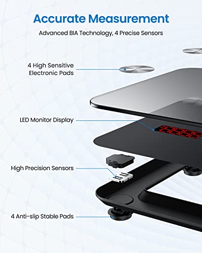Details: RENPHO Weight Scale Bluetooth Body Fat Scale Smart BMI Scale Digital Bathroom Wireless, Body Fat Monitor, Body Composition Analyzer 396lbs - Black