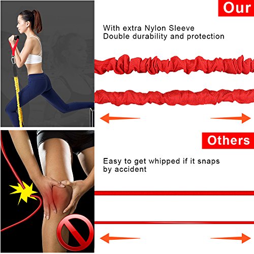 - đȘăANTI-SNAP DOUBLE PROTECTION ă- Build with high quality protective Nylon sleeve and premium natural latex which prevents the resistance tube from being damaged, and provide you double protection in case the band were to snap, our elastic exercise bands serve long time and provide the maximum resistance.