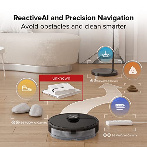 - 【Taking Cleaning to Another Lever】Using twin cameras and advanced ReactiveAI obstacle avoidance technology, S6 MaxV estimates the size and location of every obstacle and the best way to clean around them, giving MaxV the intelligence to avoid both objects it recognizes and objects that it does not. This means people, especially parents and pet owners, can run their robots with fewer worries than ever before.