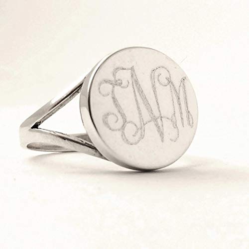Details: This ring is a customer favorite. It is made of 925 sterling silver. We will permanently engrave the monogram on the round disc. Our production time is 2-4 business days.