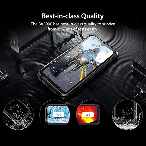 - 🏆 【5.7 inch reliable rugged phone】The better choice of outdoor sports enthusiast and industrial or water Activities worker. BV5900 [MIL-STD-810G] with its ultra solid IP68 rating and 5.7 inch Corning Gorilla Glass 3 unbreakable screen, specific for outdoor use, has water proof, drop proof (5 Feet/1.5M) and 99% dust proof functions and made to withstand extreme temperatures between -22°F (-30 ° C) and 122°F ( 50 ° C). It is an ultra-rugged smartphone that’s strong, tough and reliable.