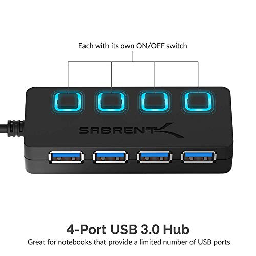 Details: Add up to 4 devices quickly and easily with the Sabrent 4-Port USB 3.0 Hub. The thin, lightweight design makes this hub a great travel companion to expand one USB 3.0 port into four. Especially great for notebooks which come with only a few ports in an era when you need to attach many USB devices at once, such as a printer, card reader, cell phone, iPod, thumb drive, mouse, keyboard, or an external hard drive. Fully backwards compatible with the USB 2.0/1.1 products. Plus, each port has its own separate power switch so you can control each port independently. Expand your high speed USB 3.0 ports Technology seems to advance at ever increasing speeds. With the recent release of Super-Speed USB 3.0, you can now transfer data at up to 10 times the speeds of the older USB 2.0 standards! Speeds of 5Gbps are a vast improvement over USB 2.0 that only supports up to 480Mbps. The Sabrent USB 3.0 Hub is a great tool to expand a single USB 3.0 port into 4 ports, so now you can connect all of your USB devices at one time. Plus, its small and elegant design has been configured to be as thin as possible so as to not take up precious space as you travel. Yet, it is still backward compatible with your older devices, so you can still use it in conjunction with USB 2.0 devices. System Requirements: Windows 2000/XP/Vista/7/8/8.1/10Mac OS X Please Note:2.4Ghz wireless devices, such as wireless keyboard and mouse adapters, may not work in close proximity to USB 3.0 devices or hubs. Connecting to a USB 2.0 port is recommended.For a stable connection, the devices connected to the 4-Port USB 3.0 Hub must not exceed a combined current of 5 volts 900 mAh. This 4-Port USB 3.0 Hub will not charge an iPad (it will only sync).Package contentsSabrent 4-Port USB 3.05V/2.5A power adapter;The product is multiple voltage compatible, that voltage arrange is 100-240V