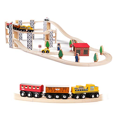 - Unique wooden train set: a unique Rail high-level Part Comes With the wooden train set, which create a fun, multi-level track and make the track set more attractive for your little guys.