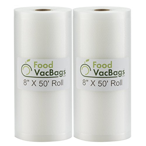 Details: FoodVacBags block moisture and air, while maintaining the freshness, flavor and nutritional value of all of your foods! You've already decided to save money by preserving your food, now save on the tool you need to do it. FoodVacBags 4 mil Vacuum Sealer Bags work on all vacuum sealer machines. The 50' rolls offer an incredible value, saving you 60% or more over other name brands. The embossed pattern draws out air quickly, saving wear and tear on your machine.