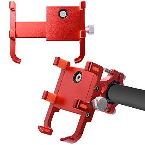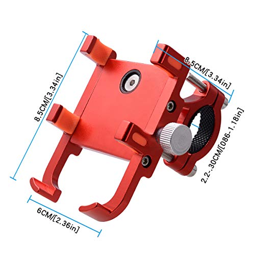 Details: Features:Can be installed on e-motorcycle, motorcycle, ATVs, bicycles, baby carriages and the likeConstructed from heavy duty aluminum alloy material, sturdy and firm360 degree rotation design for free angle adjustment Six-point hook design with cushioning patches grips your phone firmlySuitable for mobile phones with a width of 5.4-9.0cmSpecification:Item Type: Bicycle Motorcycle Phone HolderMount Position: HandlebarFit To 22mm HandlebarMaterial: Aluminum AlloyProduct Size: 8.5*6*8.5cmColor: Red | Black | Titanium ColorNote: Please allow 1-3cm (0.4-1.18") difference due to manual measurement and slight color variation for different display setting.Thank you for your understanding, nice day!Package Includes:1 x Bicycle Motorcycle Phone Mount Bracket2 x Hex Wrench2 x Spacer1 x User Manual Package Including1 x Bicycle Motorcycle Phone Mount Bracket2 x Hex Wrench2 x Spacer1 x User Manual