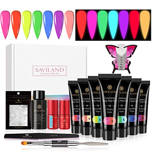 - 💕【LONG-LASTING & DURABLE】Saviland glow in the dark poly nail gel kit can make your nails firm, strong and not easy to peel off. The nail extension gel will last 3 weeks or longer with proper nail prep (filing, buffering and cleaning ). For the better adhesion, you can also apply saviland nail dehydrator and primer which can last the nail much longer.