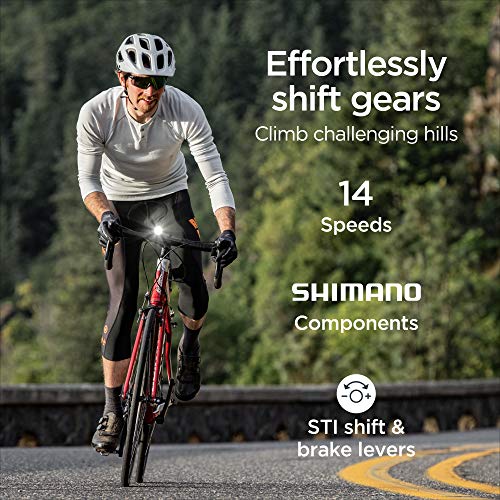 - Shimano AO70 14 speed STI shift/brake levers with Shimano front and rear derailleurs provide seamless gear changes