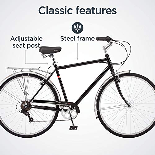 - Schwinn steel retro city frame and fork offers a stylish, comfortable ride.