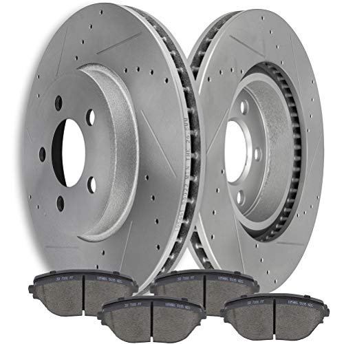 - PREMIUM BRAKE ROTORS - Brake rotors drilled & slotted designed to reduced heat buildup, maintains clear contact between brake rotors and ceramic brake pads, reduce abnormal sounds, improves 20% braking performance