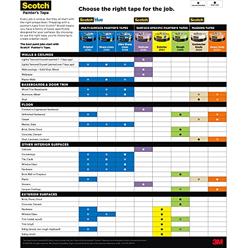 Details: Scotch Contractor Grade Masking Tape is a general purpose masking tape designed for use on non damageable surfaces. Use on vinyl, carpet, metal, and plastic for the protection you need to get the job done. Scotch Contractor Grade Masking Tape holds to surfaces for up to 3 days and then removes easily without leaving any sticky residue behind.
