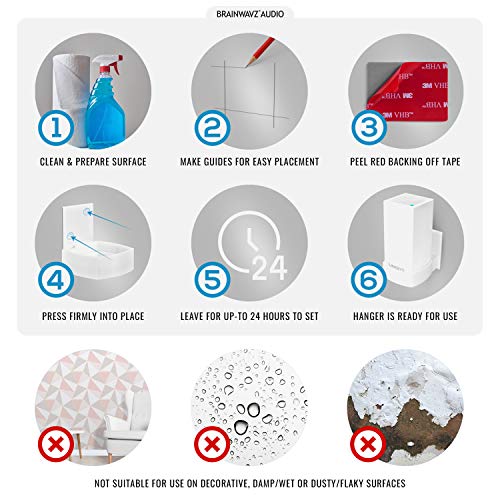 - NO TOOLS REQUIRED & NO MESS: Fast, easy and no mess, that's what Brainwavz Velop wall mount differs from the rest, using super strong VHB mounting tape made by 3M, the holder can remain in place securely and for years and can't easily be yanked out.