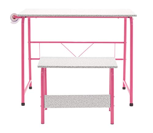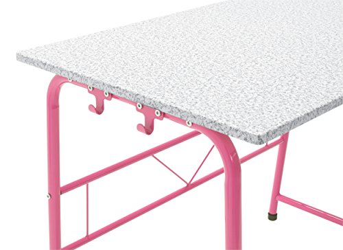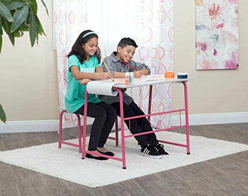 Details: The Project Center by Studio Designs combines an art/study table with bench. The sturdy, steel legs and thick tabletop make it durable. The 5/8 inch thick laminate top is easy to clean and is rounded for safety. The large 35.5-inch x 21.75-inch tabletop provides plenty of space for supplies. A paper roll is included so you can run craft paper across the table top creating a simple canvas for artwork. You can use pencils, crayons or watercolors on your craft paper and easily wipe clean any accidents off the top. Replacement paper rolls are also available through Studio Designs (Item # 13208). Two hooks on the side of the table provide a secure spot for backpacks or bags. Available in a variety of finishes: Pink/Spatter Grey (Item # 55125), Blue/Spatter Grey (Item # 55126), Purple/Spatter Grey (Item # 55127) and Grey/Spatter Grey (Item # 55128).