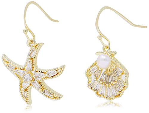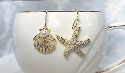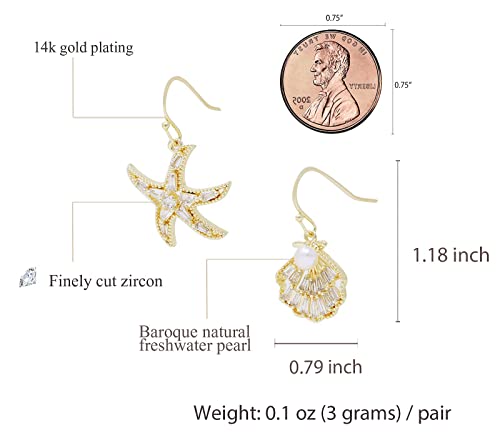 - ♕ The sea star/starfish and shell shape decorated by handpicked natural freshwater pearl, zircon and 14K plating gold stud that avoid allergies and ensure a long-lasting finish that is nickel-free, lead-free, and hypoallergenic.