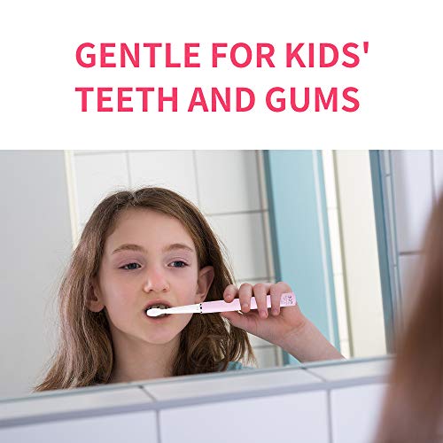 - 1.HIGH-QUALITY MATERIALS -- The kid's electric toothbrushes with ultra-soft bristles, fully protecting children's teeth and gums. The handle is made of food-grade ABS and TPE, durable, designed for children, up to 40,000 brush movement/min, cleans the mouth, and effectively remove tartar, the gentle vibrations remove more plaque than traditional manual toothbrushes.