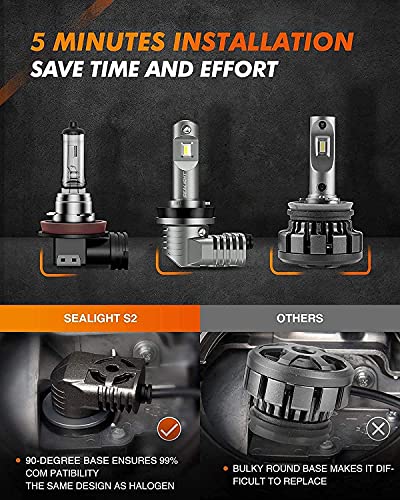 - 【20000lm Brightness】S2 9005 bulb is equipped with 12pcs CSP LED chips, producing 20000lm light output per set, which makes the street signs and obstacles much visible even in bad weather