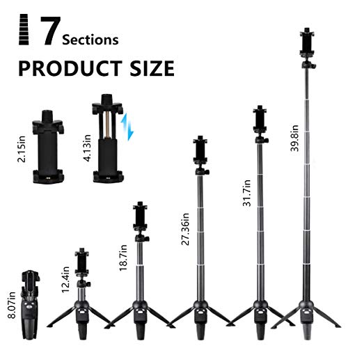 - 【All-in-one Compact Design】: 3 in 1 selfie stick with tripod, extendable selfie stick,8.07'' folded size&up to 39.8'' extension length, 7oz weight, fit into a pocket or hand.