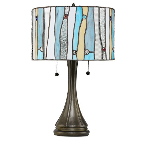 - COLORFUL: This beautiful lamp incorporates a modern blue, white and yellow glass design with small red accents and adds a unique twist to and room, both with the light on or off