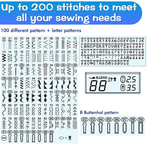 - 【200 Unique Built-in Stitches】: UTEN 2685A SEWING MACHINE have 200 different built-in stitches which contains decorative,embroidered stitching,100 letters,and 8 one-step auto-size buttonhole styles.