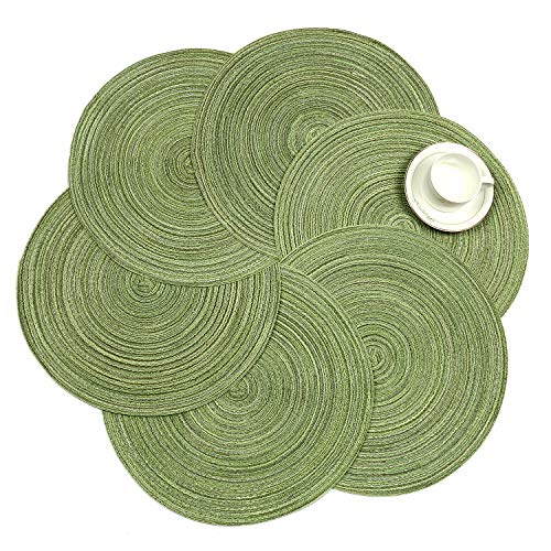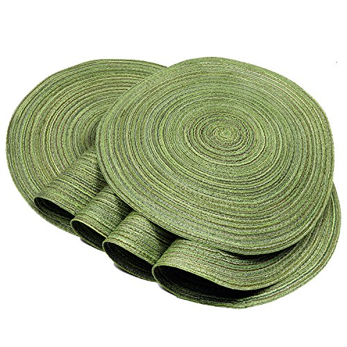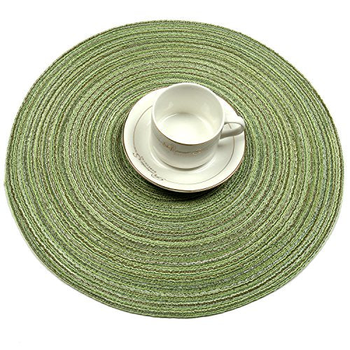 Details: Product Name:SHACOS Round Braided Placemats Material: Polypropylene and Cotton; Package Include: 4 pcs; Size: approx. 15inch/38cm; WeightLightweight, about 0.2kg, 0.4lb Advantages: 1) Protects your tabletop from scratches and stain from food or drinking glasses. You can use it on all kinds of tables, dining tables, tea tables,coffee tables in home, wedding, party, hotel, business office 2) Looks elegant, colorful and stylish,decorates your table and gets you lots compliments Notes: 1) Don't clean it by the washing machine, but to wipe clean or hand wash with soapy water directly. 2) Not Waterproof. 3) If there is a crease on it, just allow it to rest for several days, reverse rolling the mat or put heavy things on the crease. Steam iron flat below 80 degrees. FAQ: Q1:How to clean the place mat? Is it ok for washing it with dish washer? A1:You'd better wash them by hand,wipe clean with wet cloth is OK. don't put them into the dishwasher machine,or use steel ball to clean,so to prevent it from being damaged. Q2:Is the size of the mat correct? A2:There may be 0.4cm discrepancy, each placemat is unique because they are handmade,and you can just be relaxed,this will not affect usage. About SHACOS: We offer various daily use products in kitchen and home decoration, including table placemats, table runner, kitchen rugs, bath rugs and artificial flowers and plants.