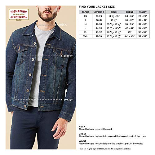 Details: A Signature by Levi Strauss & Co.™ Men’s Trucker Jacket offers incredible trend-proof style with a classic fit yet modern look, no matter what season or occasion. Premium flex denim gives all day comfort for a relaxed or polished look. The Signature by Levi Strauss & Co.™ Men’s Trucker is an instant-cool layering piece for every guy.