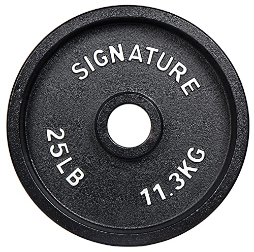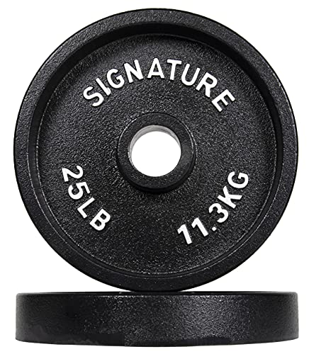 Details: Signature Fitness Deep Dish 2-Inch Olympic Cast Iron Weight Plates with E-Coating