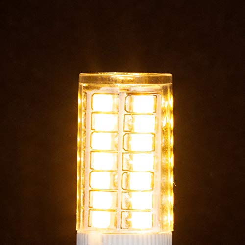 - DURABLE AND STANDARD SIZE: Heat Dissipating Ceramic with Clear PolyCarbonate (PC) Plastic. Diameter: 0.625” (15.9mm), Length: 1.94” (49mm), Shape: T4 JCD, Base: G9 Looped 2 Pin (9mm Pin Distance). Pack of 5