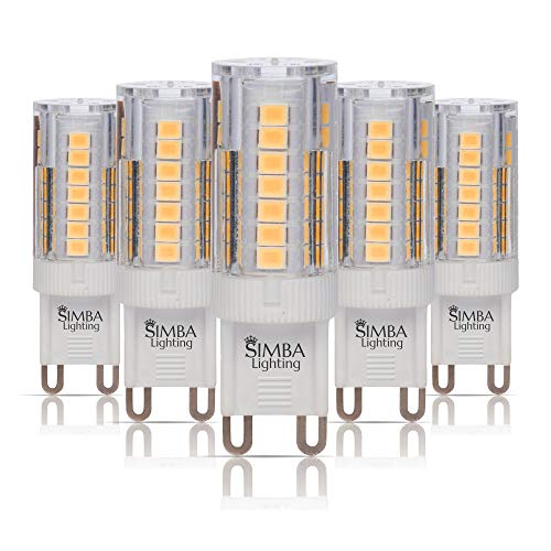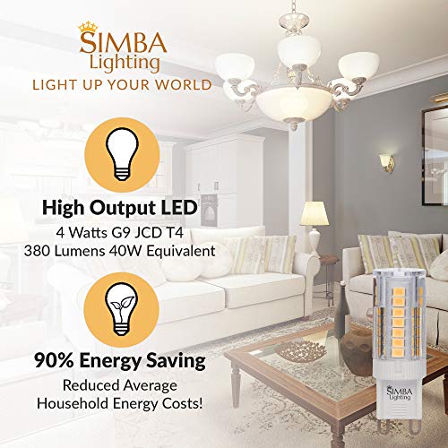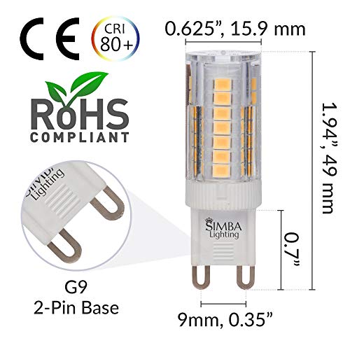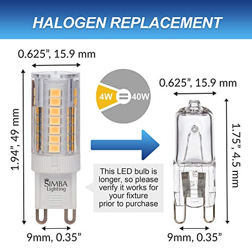 Details: Simba Lighting G9 LED Light Bulb (5 Pack) 4W T4 40W Halogen Replacement for Pendants, Ceiling Lights, Desk Lamp, Wall Sconce, 120V JCD Bi-Pin Base Non-Dimmable, 3000K Soft White