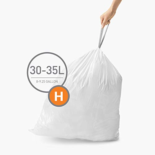 Details: Product Description simplehuman custom fit can liners are designed to fit our cans perfectly, so the bag stays completely hidden when the lid is closed. The custom fit also means the liner fits tightly around the inner bucket and won't slip into the trash. Available in a range of sizes, these liners are made from extra durable plastic with thick double seams to prevent rips and tears and convenient drawstring handles so they are easy to lift, tie and carry. Brand Story We design tools that help people become more efficient at home. Day to day life has room for improvement. That's the basic thinking behind simplehuman. Many activities in our daily routine are so basic that we take them for granted. Washing our hands, cleaning up after a meal, grooming and prepping our appearance. Through innovation and new technologies, we find ways to streamline these simple tasks. We call our products tools for efficient living.