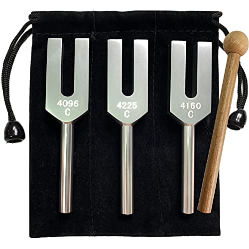 - 【Super Value Set】: Contains crystal tuning fork ( 4096, 4160 and 4225Hz ), 1 x wooden hammer striker, 1 x velvet storage bag of pockets (black or blue) and cleaning cloth. Different frequency would meet all your different demands.