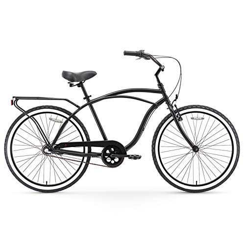 - Classic, curvy Men's beach cruiser bicycle with 15-inch durable steel frame; ideal for casual, comfortable riding around the neighborhood