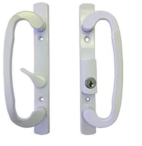 Details: Sliding Glass Patio Door Handle Set Mortise style Used on Sash Controls and other manufacturer's doors. Non-Handed; Handle can be reversed to work on right or left handed doors. The latch lever is located off-center, in position B. Color: White Center-to-Center Holes: 3-15/16" Overall Height: 8-1/2" Width: 1" Works with 16-363-45 Mortise Lock. If a non-keyed version is desired, use 13-245W . One handle set per package.