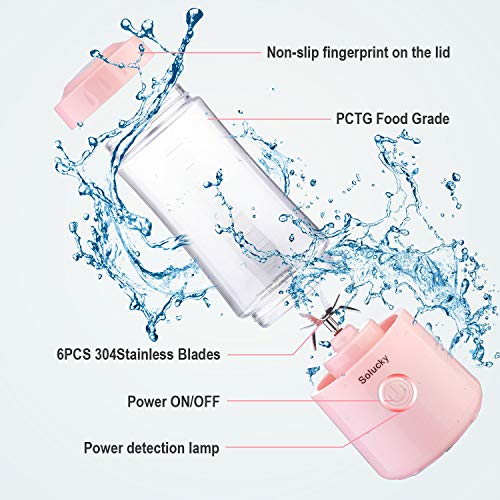 - 【Perfect Gift & Outstanding Service】: No other gifts is better than bringing health to our family, friends and lovers. Solucky portable blender is great to make fruit smoothie, protein shakes, baby food and other supplementary drinks. Not only it can be used to make juice, it also can be used as a common water bottle since it lightweight and portable features. Solucky provides after-sales service for up to two years. If you have any quality problems, you can contact us at any time.