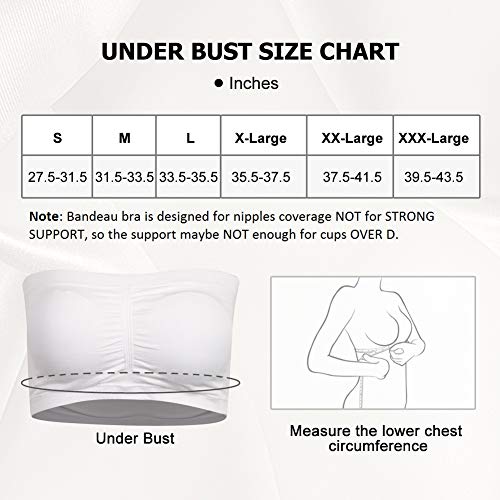 - ♥ SOFT & COMFORTABLE: Made of premium nylon, the elastic seamless bandeau is so soft and comfortable that it will not cause any irritating reaction to your skin and body. Soft and stretchy fabric with elastic upper and lower edges keeps the bandeau bra in place and prevents it from slipping off. Breathable material wicks sweat away to keep your body cool even in hot day. Besides, NO UNDERWIRE design helps minimize chafing and pressure to make you feel cooler and more breathable in summer