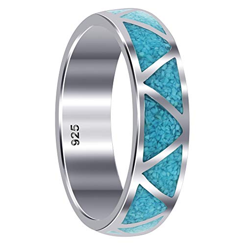 Details: Rare and exceptional, this silver wedding band ring features Southwestern Style for a harmonious medley of silver and turquoise. This impeccable band is made from .925 sterling silver and exceptional Turquoise Gemstone inlay detail makes the ring come to life. Measuring at 6mm wide, this ring can be worn on a daily basis for a beautiful hint of color anytime. The ring will be shipped in a FREE gift box, perfect for surprising that special someone. *This product is not Indian made or an Indian product under 25 U.S.C. 305 et. sec.