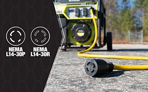 Details: Check out Southwire's 50-foot 10/4 SJTW generator cord. This cord is yellow with a black L14-30 plug and receptacle, which avoids cords from coming undone. Limited lifetime .