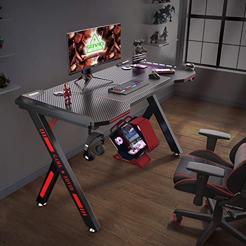 - 🎮【 Spacious Desktop 】–47”W*23.6”D carbon fiber desktop, the large desktop provides massive space for 2 monitors gaming keyboards and other gaming gear. 23.6” Depth provides enough leg room.